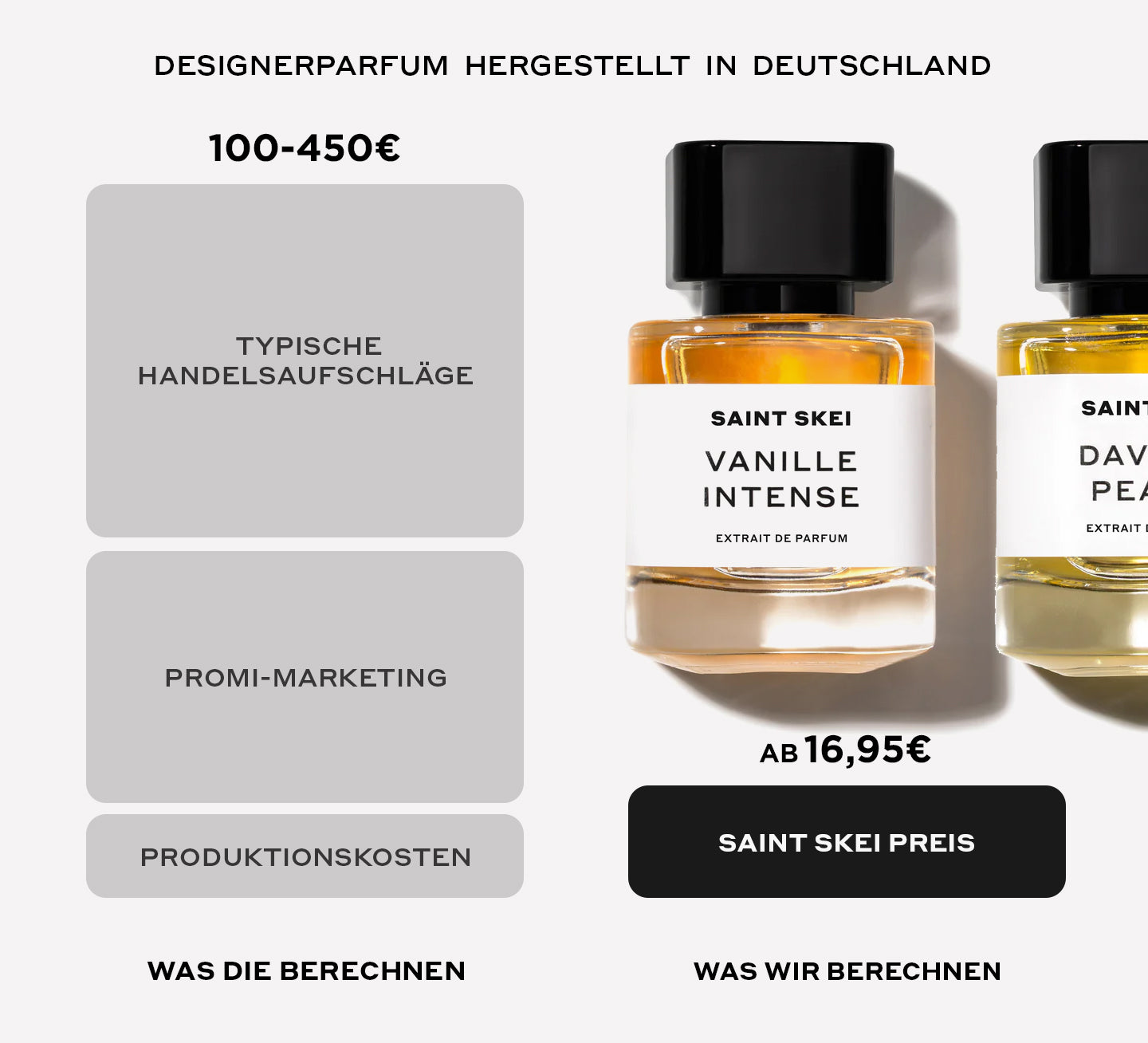 Ich kann SAINT SKEI euch nur wärmstens empfehlen! Ich habe mehrere Düfte bestellt, die für mich genauso gut riechen – wenn nicht sogar besser – als bekannte High-End-Marken, aber zu einem Bruchteil des Preises.